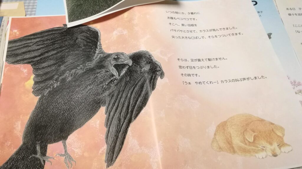 第3回きほく えほんのもり コンテストで最優秀賞を受賞された「こいぬのそら」の原稿に、障害者就労事業所の利用者が、只今一生懸命挿絵を制作しているところです。